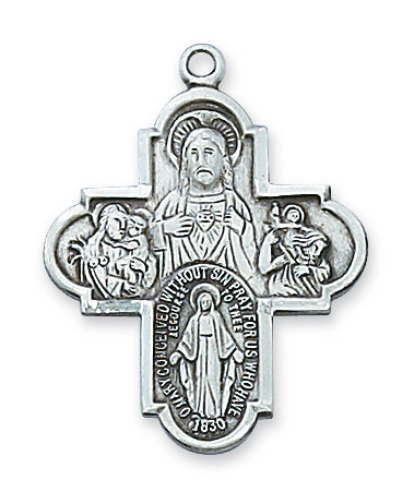 STERLING SILVER 1" 4-WAY MEDAL. INCLUDES 18" RHODIUM PLATED CHAIN AND DELUXE GIFT BOX.
