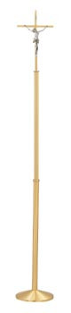 78"H, 10-1/2" base, 10" x 16" cross. Breaks at node for carrying. Carry section weighs 4 pounds. Top section removable 44".