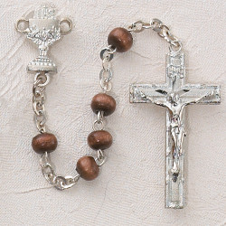 ROSARY BROWN WOOD RHODIUM CHALICE