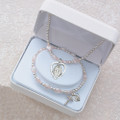 PINK PEARL HEART RHODIUM MIRACULOUS STRETCH BRACELET & PENDANT SET