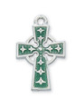 RHODIUM CELTIC CROSS WITH GREEN ENAMEL RC8083E