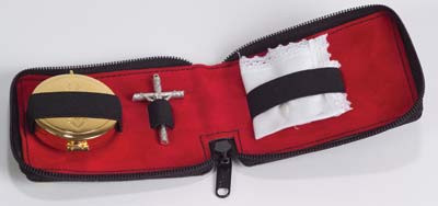 This streamlined Sick Call Set is designed for the focused administration of Holy Communion to the sick and homebound. Housed in a compact 3-1/2" x 4-1/2" genuine leather case with a secure zipper closure, this kit is ideal for extraordinary ministers and clergy who require a discreet and highly portable solution for hospital rounds or home visitations. The interior is organized to keep the sacred vessels protected and easily accessible.