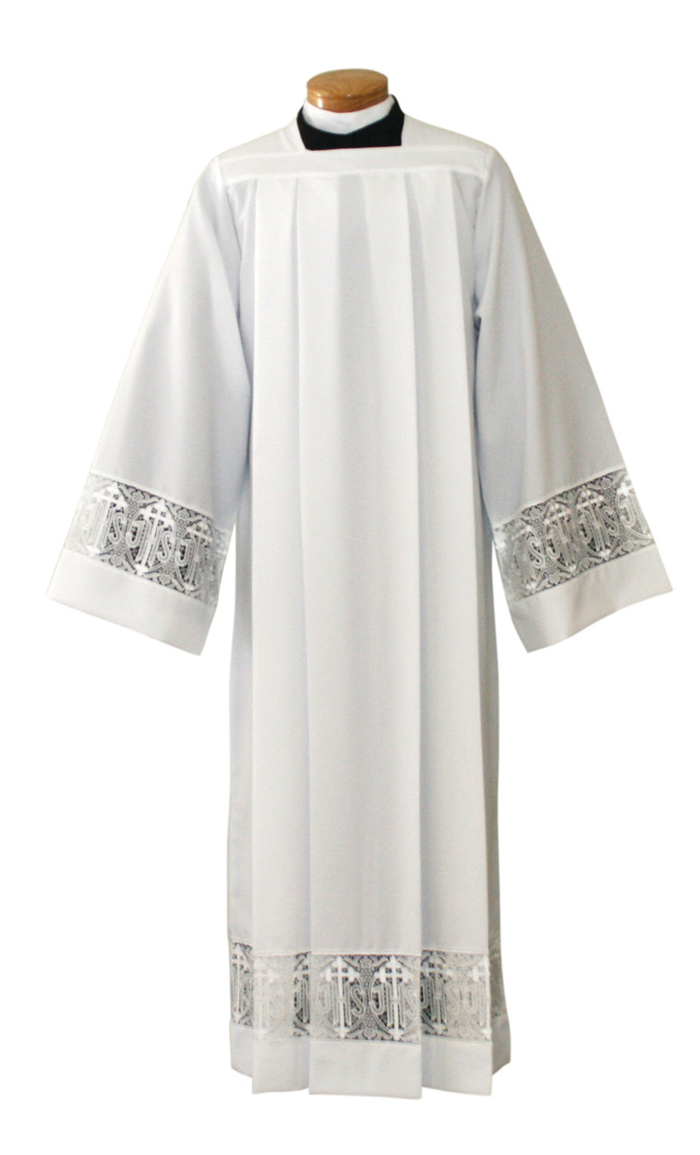 Silky Smooth Poplin Alb With 5 Inch Lace Bands Latin Cross With IHS