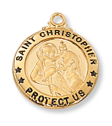 GOLD PLATED STERLING SILVER 3/4" ST. CHRISTOPHER MEDAL. INCLUDES 20" GOLD PLATED CHAIN AND DELUXE GIFT BOX.