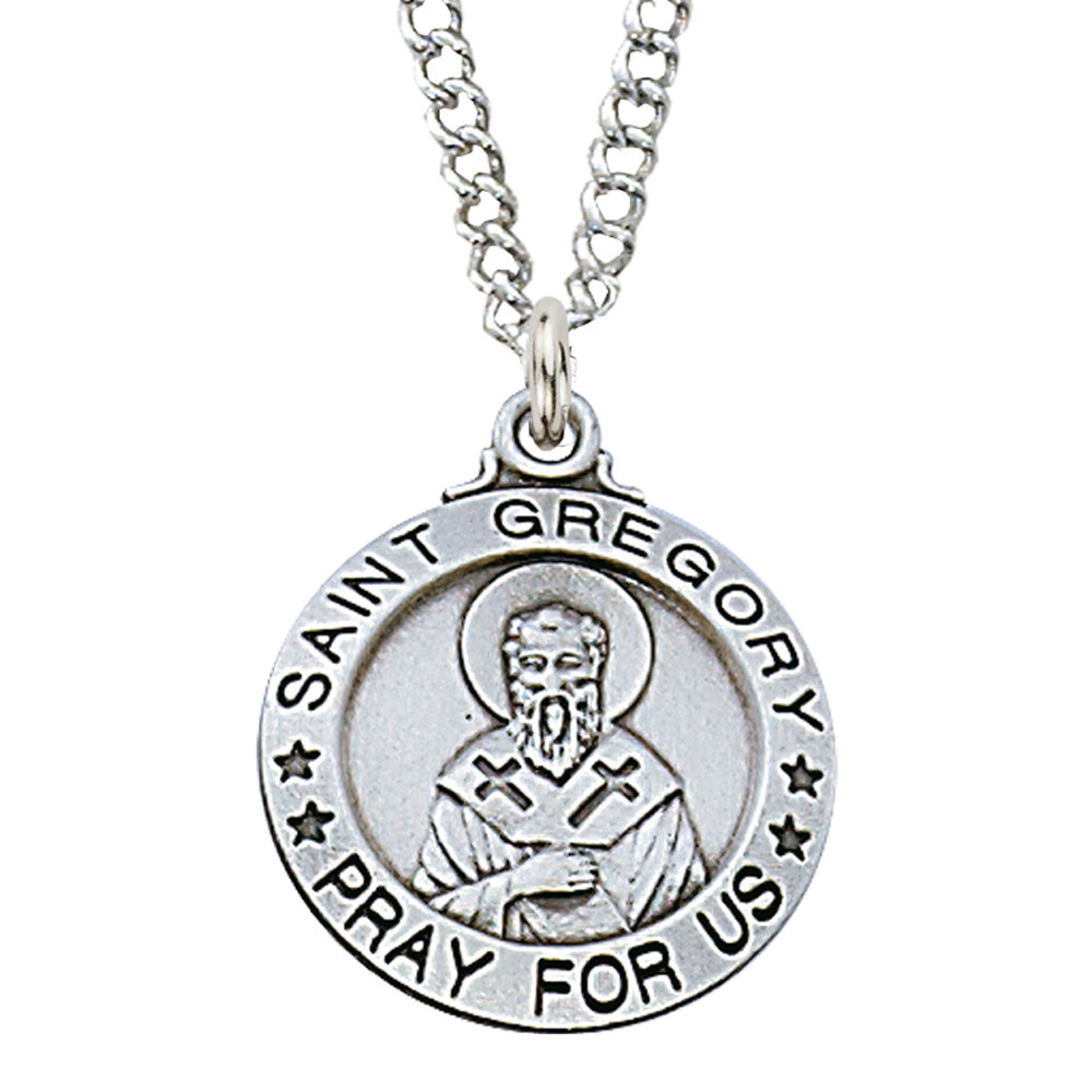 Honor St. Gregory the Great, doctor of the Church and patron saint of musicians, singers, and teachers, with this sterling silver medal necklace. The ¾" detailed medal features classic imagery associated with his leadership, prayerful wisdom, and contributions to sacred music, designed to accompany daily wear as a reminder of faith, service, and devotion.
