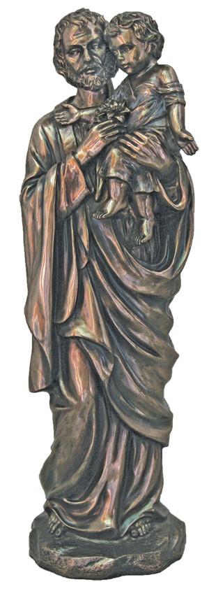 St. Joseph & Child in lightly hand-painted cold cast bronze, 11". Indoor/outdoor.