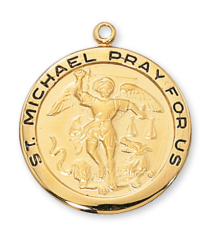 GOLD PLATED STERLING SILVER 1" ST. MICHAEL MEDAL. INCLUDES 24" GOLD PLATED CHAIN AND DELUXE GIFT BOX.