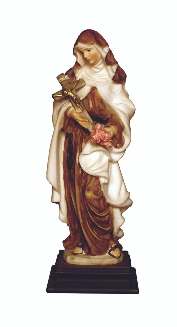 St. Theresa-baroque, hand-painted alabaster, 8 inches. MADE IN ITALY.